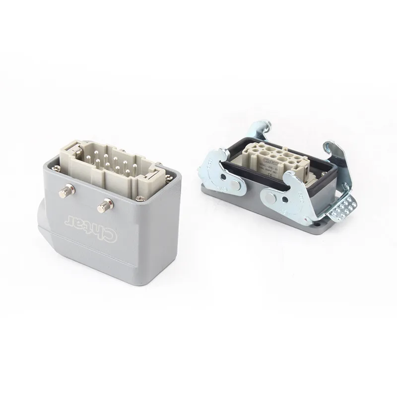 Tá an CHTAR 10 Pin TS Heavy Duty Connectors seo á n-úsáid go forleathan le HE HD HEE, HDD. Is cuid de chónaisc tromshaothair é tithíocht bonn agus baineann. Tá sé déanta as alúmanam agus deartha mar bhúcla aonair. Cineál bloc teirminéil tromshaothair atá éasca le húsáid.