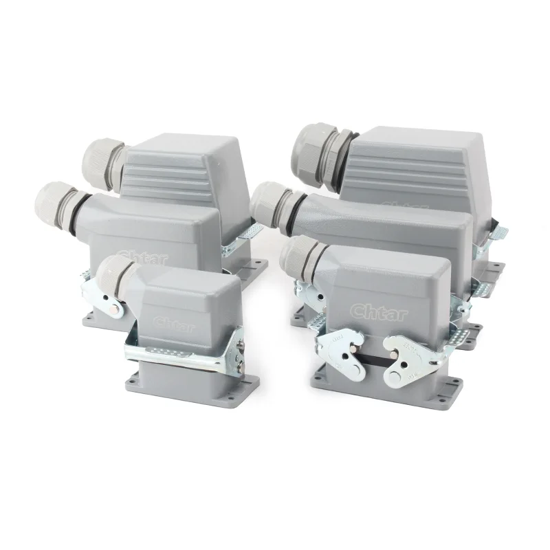 Tá na Nascóirí Dualgas Trom 24 Pin AG durable atá deartha agus táirgthe ag CHTAR oiriúnach do chónaisc 24-bioráin HE, HD, HEE, HDD agus do chónaisc tromshaothair eile. Tá an cónascaire déanta as cóimhiotal alúmanaim agus brataithe le púdar liath RAL7037. Is é a sruth oibriúcháin 16A, is é 500VAC an voltas oibriúcháin, is é an raon teochta oibriúcháin -40 ℃ go + 125 ℃ (-40 ℉ go + 257 ℉), tá na timthriallta plugála agus díphlugála 500 uair, agus is é an grád cosanta ná IP65.