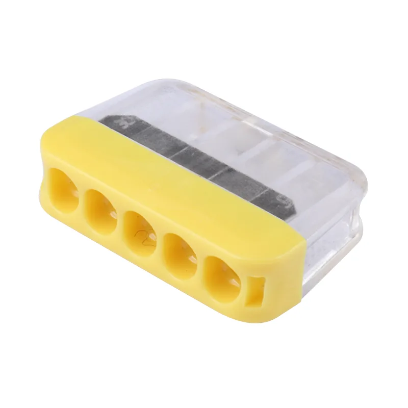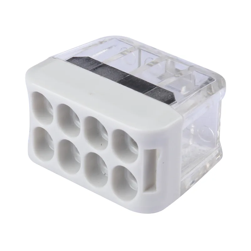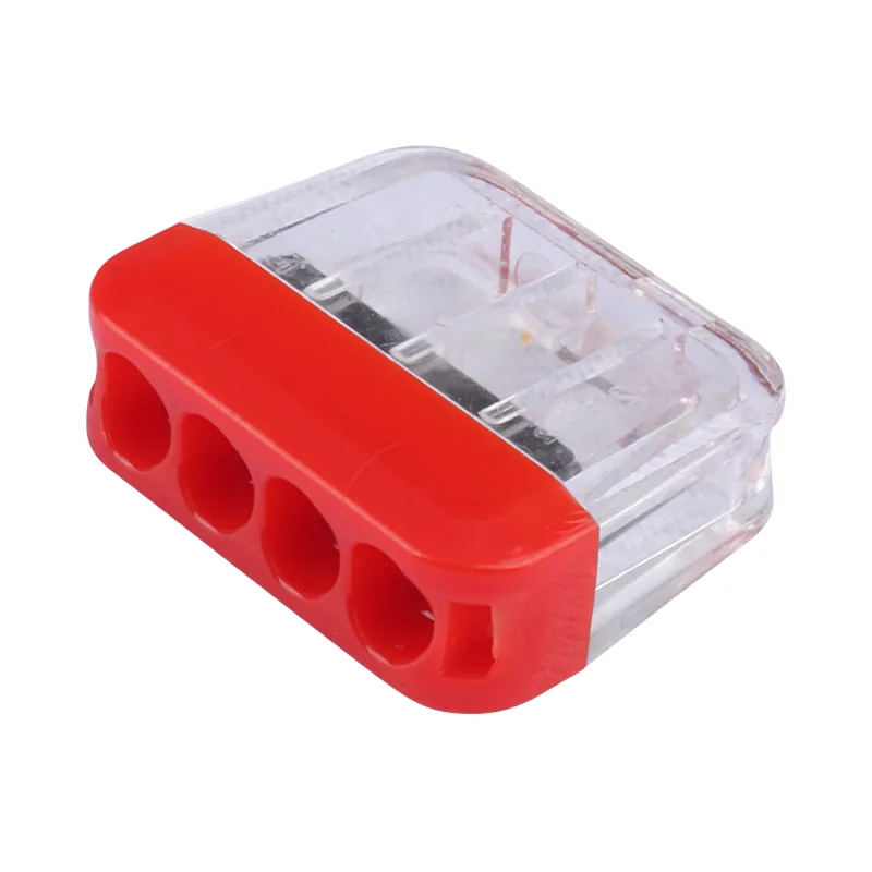 CHTAR 2P 3P 4P 5P 6P 8P Feed-through Wire Nascóirí Tapa gan luamháin déanta as ábhar tithíochta PC grád UL94 V0 , Tá seoltaí déanta as copar T2 le Stáin plátáilte agus tá an earraigh déanta as S301. Is féidir é a nascadh le sreanga dochta 0.5-2.5mm2, chuir sé líon difriúil poill ar fáil do chainníocht sreanga éagsúla a roghnú. Is féidir é a nascadh go maith le 2 shreang go 8 sreanga. Is féidir linn dath nó tithíocht éagsúil a dhéanamh do chustaiméirí a roghnaíonn.
