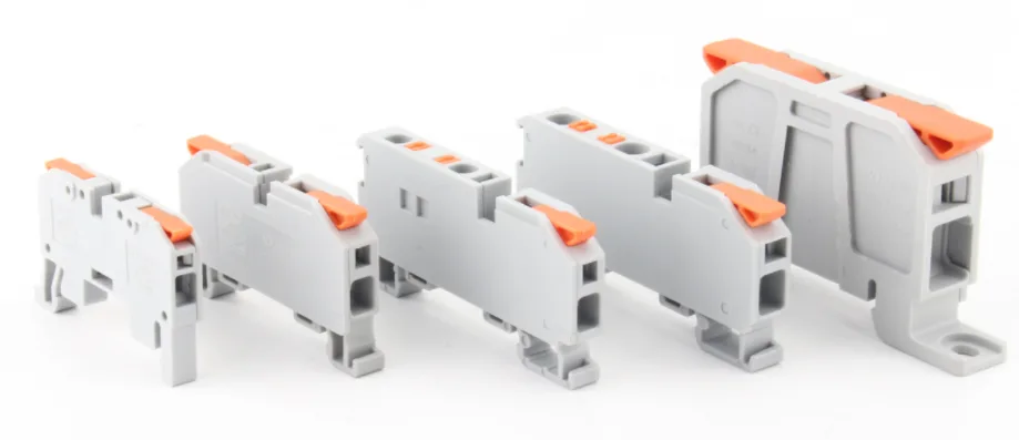 din Rail Tá tithíocht nascóirí sciobtha sreinge splicing le feiceáil ar chos le haghaidh ceangal tapa agus glasáil shlán ar iarnród caighdeánach hata barr (TS35), rud a chuireann ar chumas eagrú sraitheanna néata cothrománach laistigh de imfhálú. Dearann an monaróir tithíocht thrédhearcach atá déanta as polycarbonate soiléir, ceadaíonn sé iniúchadh amhairc ar chur isteach sreang ceart agus an teagmháil inmheánach sula ndúntar an luamhán.