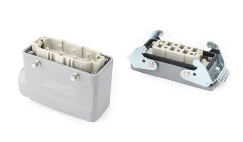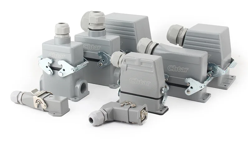 Tithíocht Is féidir nascóirí tromshaothair a chosaint ar na codanna isteach a chosnaíonn teagmhálacha inmheánacha agus comhpháirteanna leictreacha ó dhamáiste fisiceach, deannach, taise agus tionchar timpisteach. Feidhmíonn siad mar bhunús struchtúrach chun Ardchosaint Ingress (IP65) a bhaint amach nuair a chomhcheanglaítear iad le rónta agus gaiscéid. Feidhmíonn siad mar doirteal teasa, ag tarraingt fuinneamh teirmeach ar shiúl ó chríochfoirt agus seoltóirí inmheánacha, rud a choscann róthéamh agus a chinntíonn feidhmíocht iontaofa. Soláthraíonn tithíocht imfhálú seoltaí leanúnach a dhéanann bac nó atreoraíonn trasnaíocht leictreamaighnéadach, ríthábhachtach do threalamh leictreonach íogair.