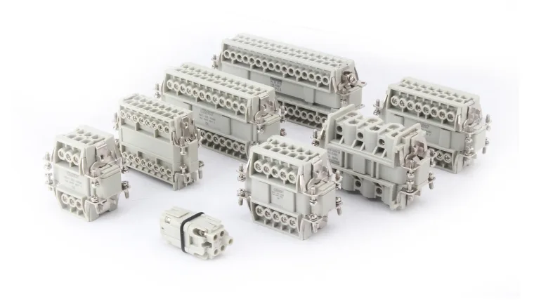 Ionsáigh Is minic gur comhpháirteanna aonair iad nascóirí tromshaothair nó críochfoirt taobh istigh a chuirtear isteach i gcustaí inslithe modúlach laistigh den bhlaosc poist. Ligeann sé seo cumraíochtaí saincheaptha a mheascann cumhacht, comharthaí, sonraí, agus fiú teagmhálacha comhaiseacha nó snáthoptaice i gcónascaire amháin. Tá an bloc críochfoirt ionsáite agus teagmhálaithe aonair deartha le cruthanna agus suíomhanna sonracha chun cúpláil cheart a chinntiú agus chun cosc a chur ar mhíphlugáil.