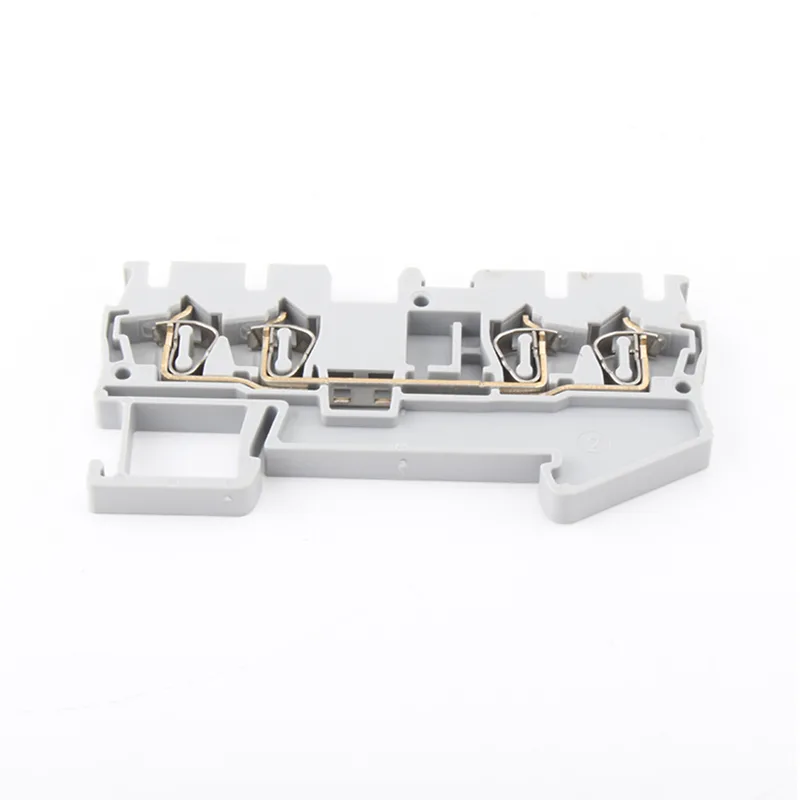 Más gá duit ceithre shreang 2.5mm² a nascadh agus a bhealach i spás painéil daingean, tá Bloc Críochfort Iarnróid CHTAR ST2.5 QUATTRO Spring DIN deartha chun é sin a réiteach. Tá fíorchumraíocht dhá-isteach, dhá-amach (2-in/2-out) ann, rud a ligeann do na ceithre sheoltóir a bheith gníomhach go comhuaineach. Déanann sé seo an-oiriúnach chun ciorcaid a scoilteadh nó a chomhcheangal nuair a bhíonn an spás ag préimh. Tá an nasc daingnithe ag a mheicníocht earrach clamp cage iontaofa, a chinntíonn greim daingean, creathadh-resistant ar gach sreang, ag soláthar tuaslagán brainse dlúth agus iontaofa.